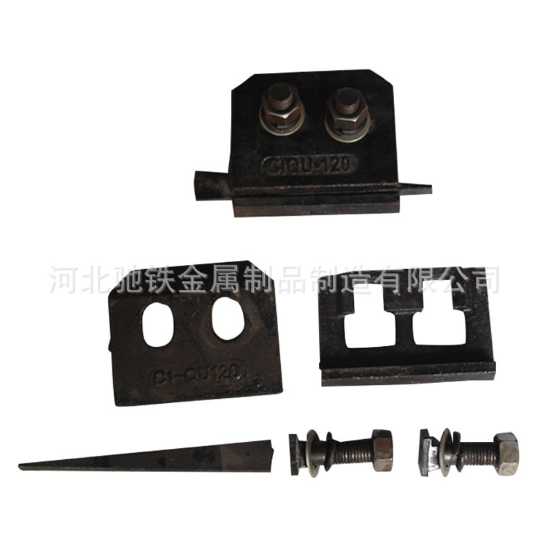 壓軌器:也稱作焊接型壓軌器、焊接型鋼軌固定裝置、鋼梁壓軌器、焊接型壓板無論怎么稱呼其作用只有一個就是壓緊固定鋼軌。